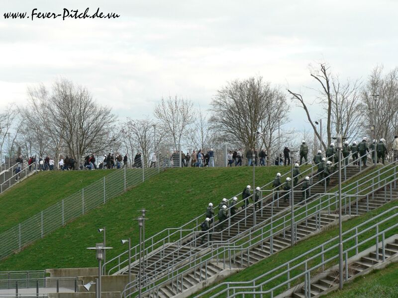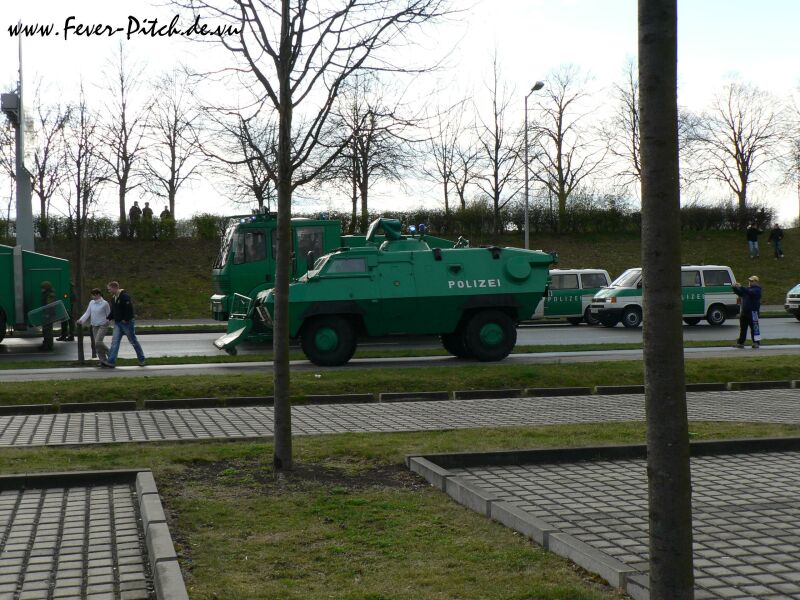 bewacht von der Polizei am Stadion ein. Nach deren Ankunft war es dann auch