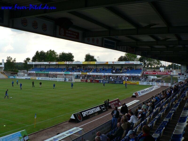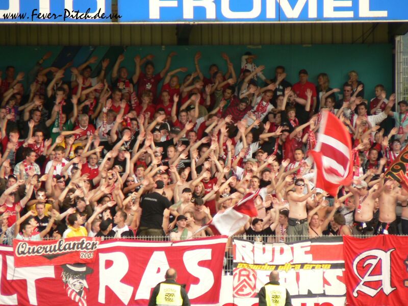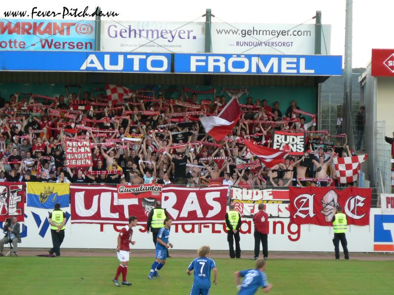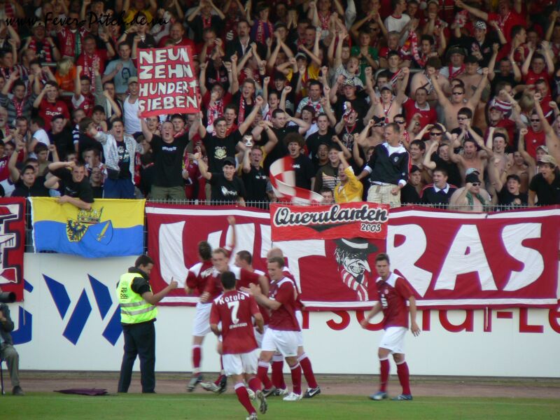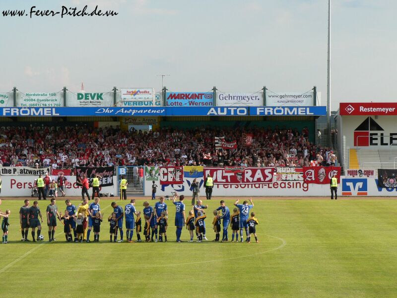 Am Stadion, was neuerdings den sinnlosen Namen PGW-Arena trägt, rund eine Stunde vor Anpfiff nicht wirklich viel los, 2/3 des Publikums dürften aus der Ruhrgebietsmetropole angereist sein. Lotte selbst ohne nennenswertes Fanpotential, die vereinzelt herumstreunenden, an den Vereinsemblemen unschwer zu erkennenden, Anhänger des Vereins aus der verbotenen Stadt tragen nicht unbedingt zur Weckung von Sympathie für diesen Verein bei. Vielleicht noch zu erwähnen, dass der eigentliche Verein dieser erwähnten Gestalten zeitgleich beim FC. St. Pauli antreten musste. Ohne Worte!!!!