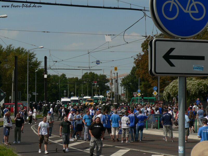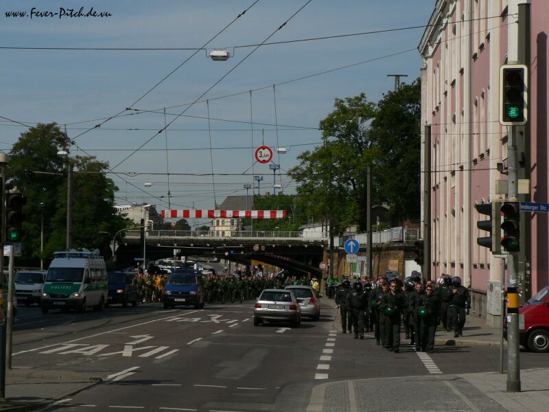 hehe), stand der etwa 300 Mann starke Dynamo Mob schon am Gleis und wurde vom,