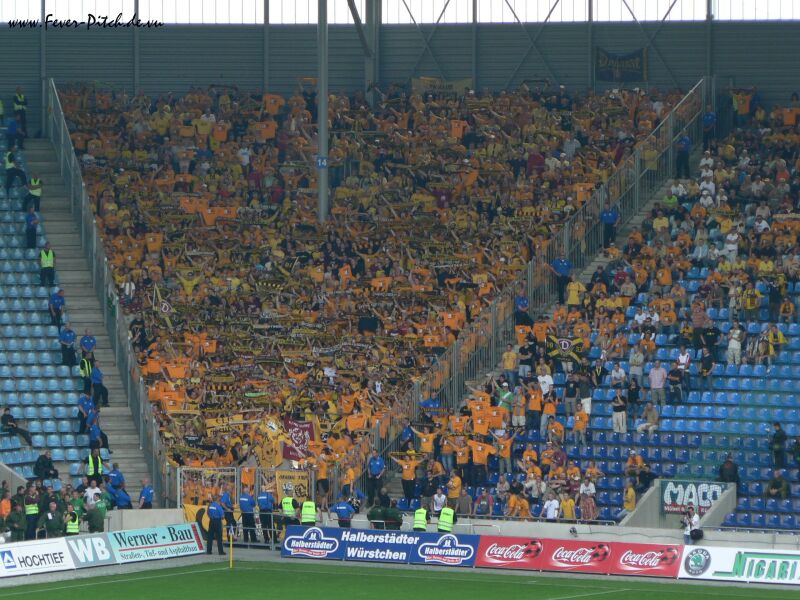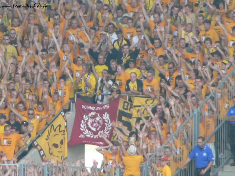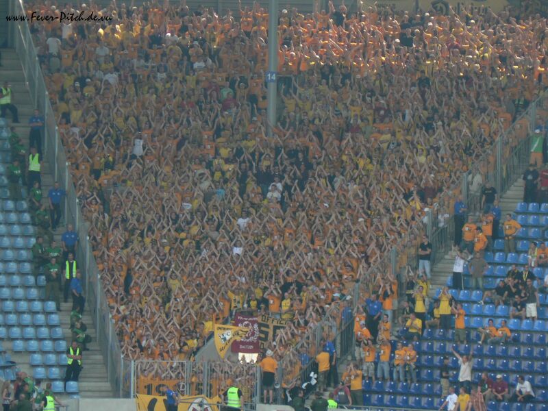 bekommen hatte und etwa 80% aller Anhänger in gelben "Dynamo Fans