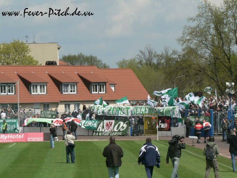 Zu Beginn des Spiels gab es zusätzlich ein "Staatlicher Terror hat vor allem eine Auswirkung:"- Transparent, welches durch ein "Er erzeugt Gegengewalt!" von Seiten der etwa 350 Leipziger zusammen mit einigen Fähnchen ergänzt wurde.