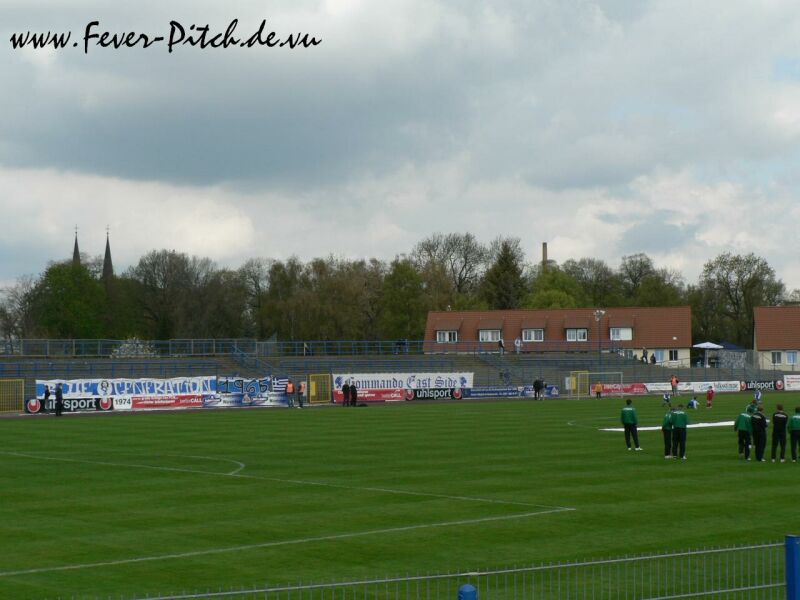 ihrer Oberligaspiele dient und inmitten von Kleingartenkolonien liegt.