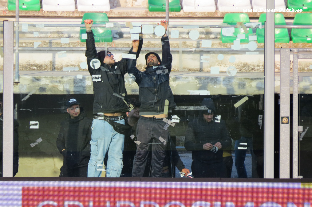 betrat und sich hinter einer „Per l’ onore di Catania“-Fahne sammelte.