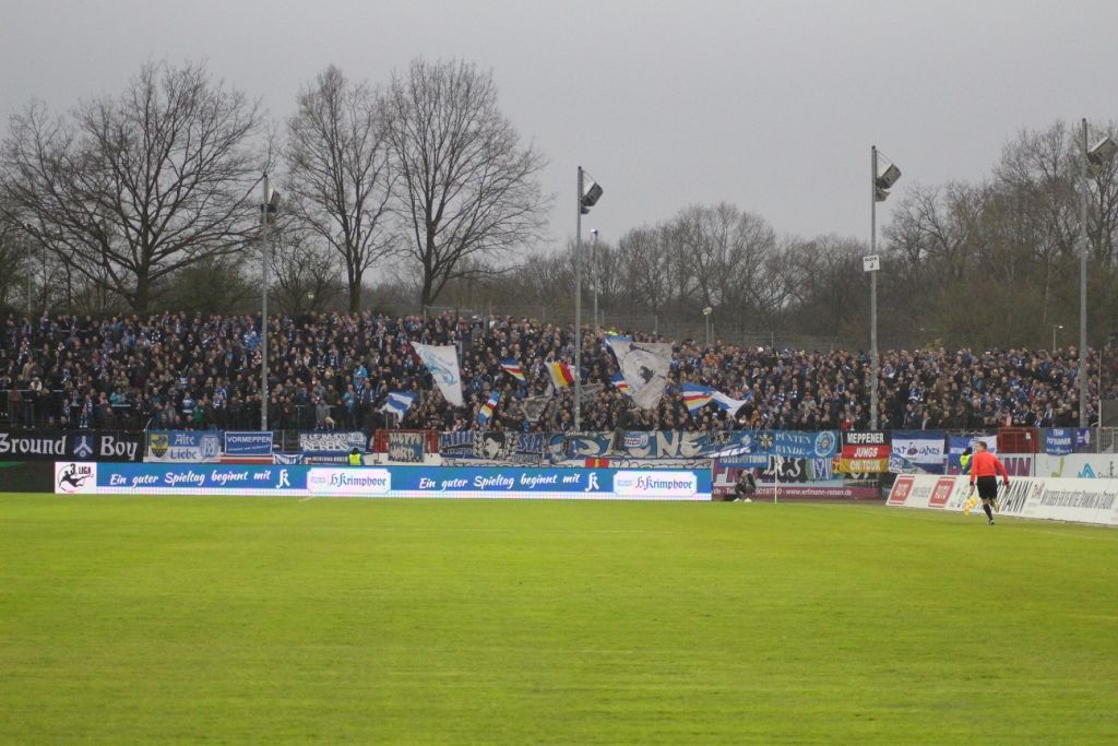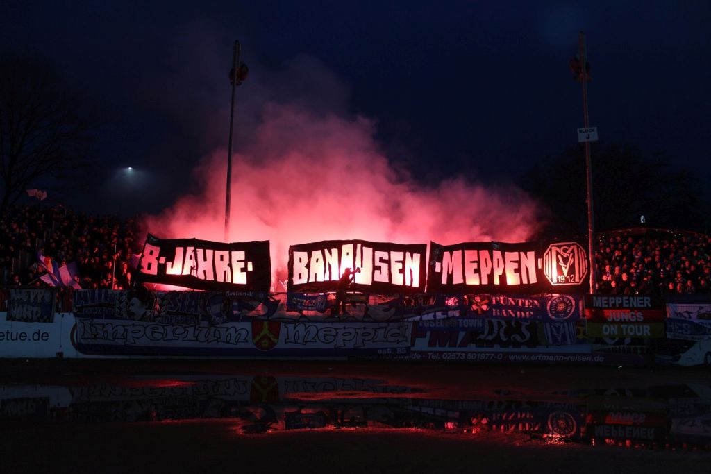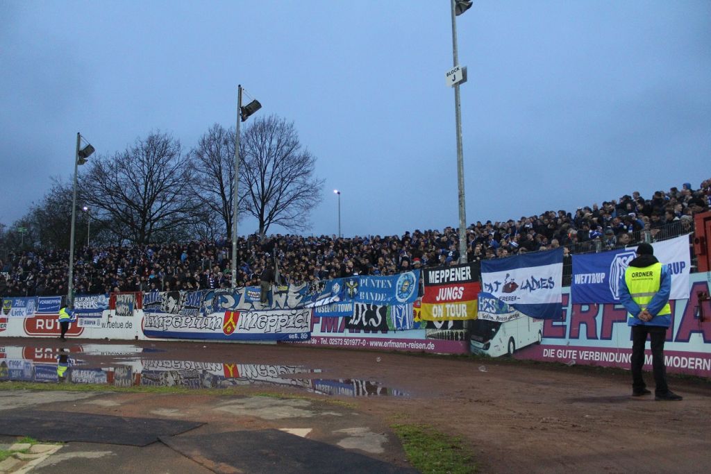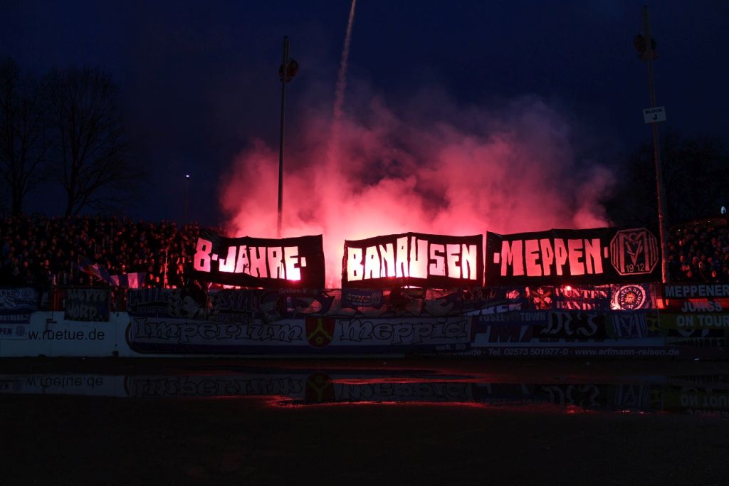 Heute sammelte sich eine Gruppe von vielleicht 50-70 Leuten am äußersten Rand der Haupttribüne hinter einer „Gezweifelt aber nicht gebrochen“-Fahne. Bewegung war dort konstant erkennbar, akustisch kam jedoch so gar nichts rüber. Aber klar- auch in MS, dessen Szene ich früher immer ganz cool fand, muss das Ganze erst wieder wachsen und nicht von heute auf morgen sind alle Probleme und Gräben der Vergangenheit überwunden.