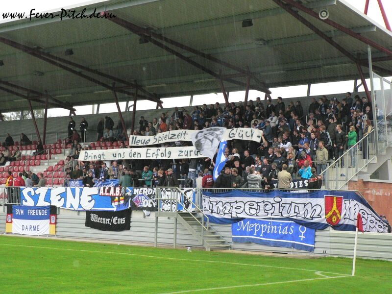 Ca. 300 Leute im Gästeblock und zusätzlich in allen Ecken des Stadions