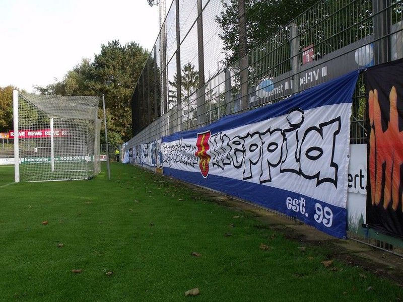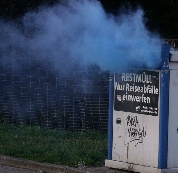 Teil Fanklamotten, die noch aus tiefen Zweitligazeiten stammen müsste. Wohl