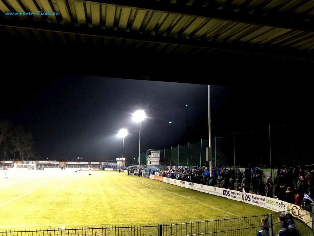 Grundsätzlich hat es mir hier gut gefallen. Flutlicht, Bier und Wurst in der Hand und hinterm Tor ne kleine Heimfanszene, die nahezu die 90 Minuten durchsingt. Viele Standardsachen, aber auch so ein, zwei eigene Liedchen gibt es d dabei zu hören. Passt schon. Von den gut 20 Nasen im Gästebereich war hingegen erwartungsgemäß nichts zu hören. Dafür gehts dann halt auch mit null Punkten heimwärts und für mich die wenigen Meter ins Hotel, wo dann irgendwann zu mir selbst „Gute Nacht“ gesagt wurde.