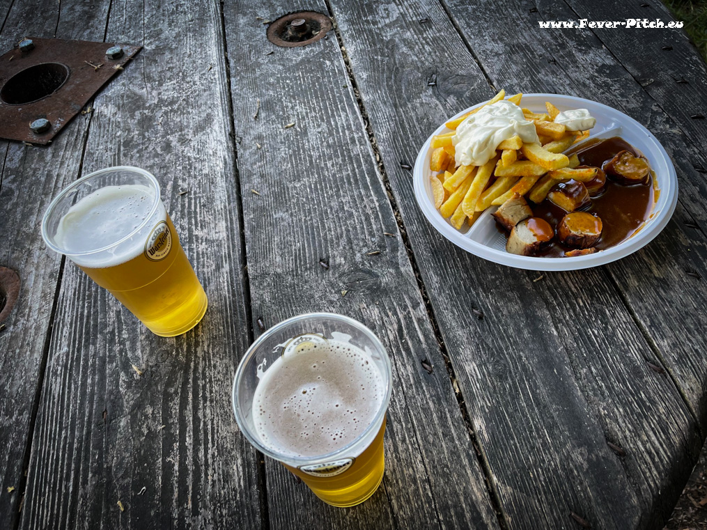 Verpflegung in Form von Mantaplatte und Pils wird sowohl in der großzügigen Vereinsgaststätte