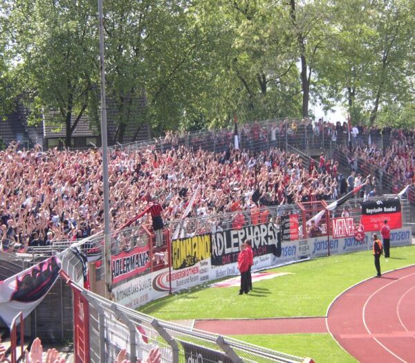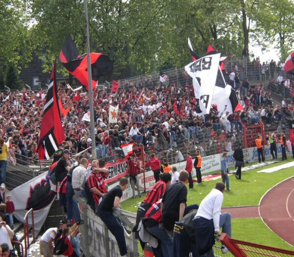 Oberhausener waren rote und weisse Plastikfähnchen mit roten und weissen Bändern zu sehen.