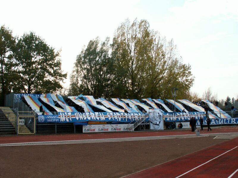 immer wieder einige Spruchbänder zeigten. So gab es auf Meppenerseite ein