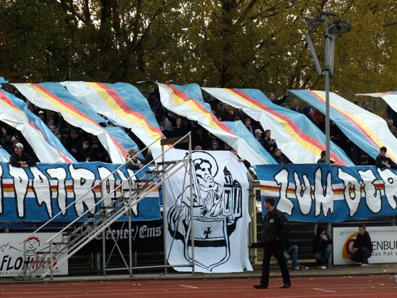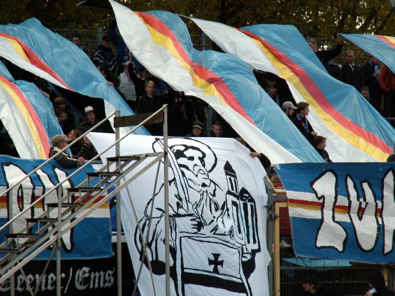 Im weiteren Verlauf dann zweimalig weißer Rauch auf Meppenseite, ein Spruchband