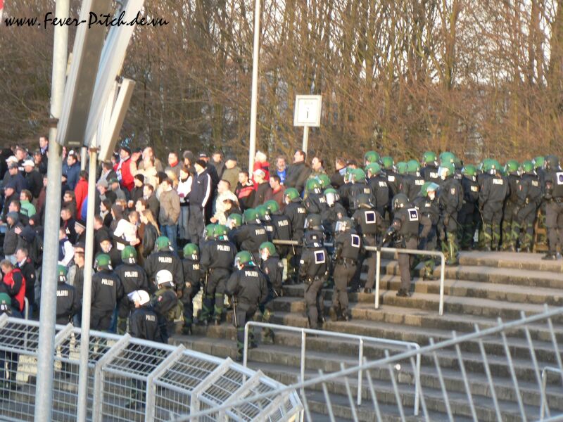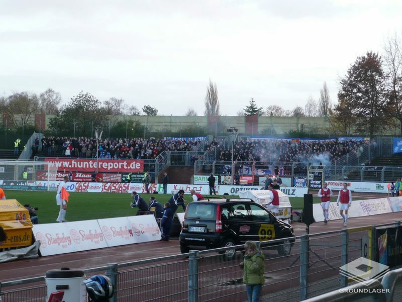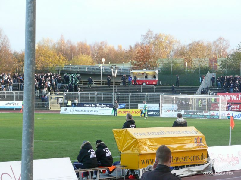 um den Gästesektor, in dem sich zu Beginn des Spiels rund 600 Emsländer