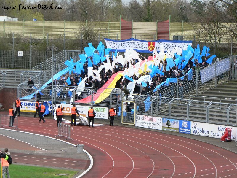 56. Minute. Tor für die Gastgeber. Baal köpft eine Freistoßflanke völlig freistehend zum 4:0 ein. Ich verlasse verzweifelt, gedemütigt und benommen neben rund weiteren 100 Meppenern den Gästeblock.