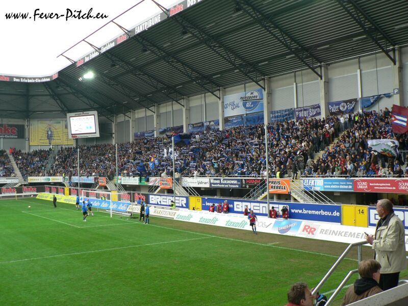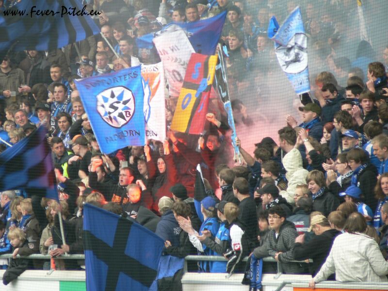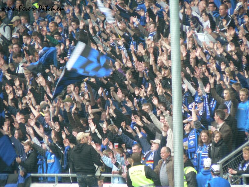 Auf der einen Hintertorseite findet sich die heimische Fanszene ein, wobei es
