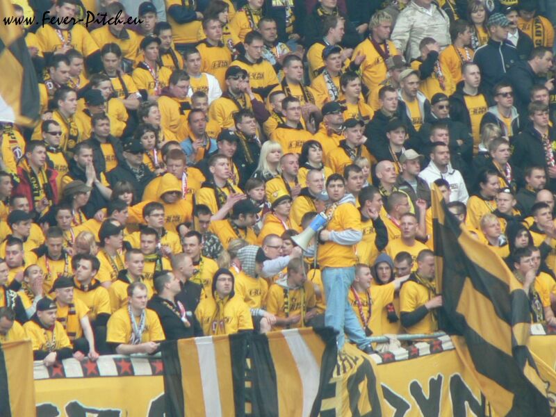 von den ca. 100 Ultras (alle in gelben Shirts) ausging und der komplette Block