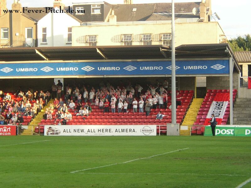 Hier bevölkerten schon unerwartet viele Derry City Fans das anliegende