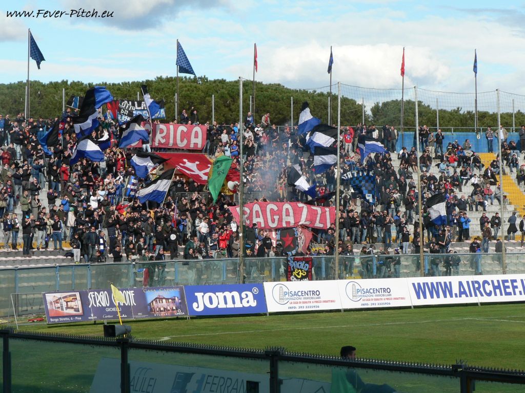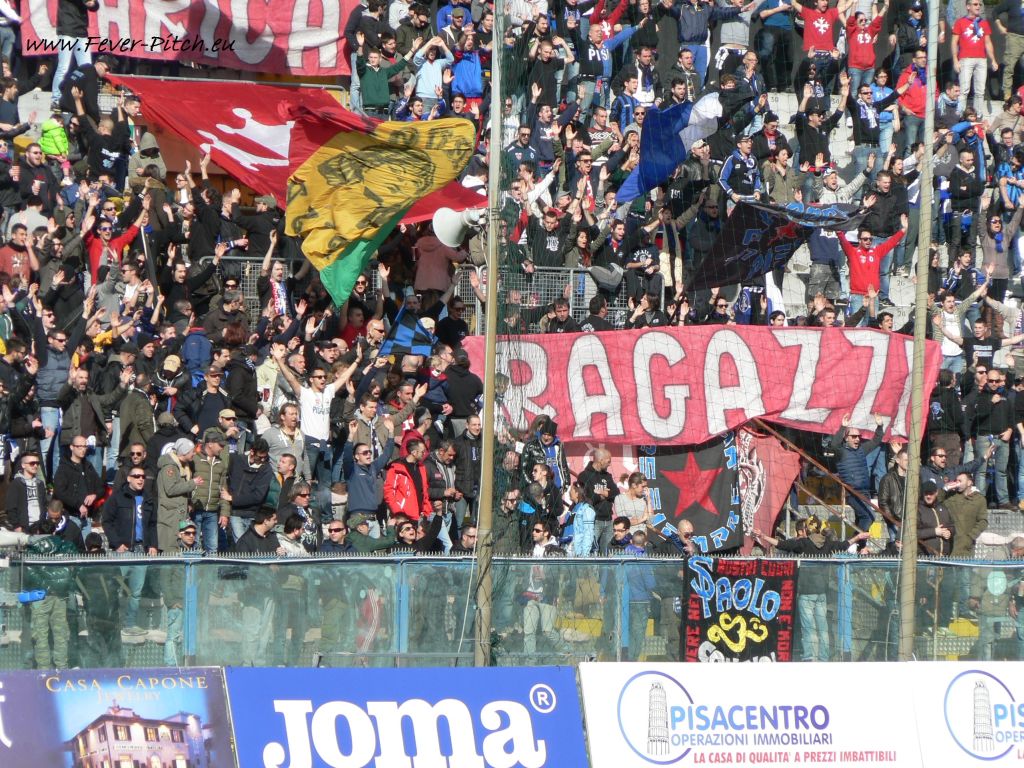 Mit rund 200-300 Aktiven gabs recht durchgängigen Support sowie einige bislang unbekannte und nett anzuhörende Melodien. Hat mir gut gefallen!! Das Spiel hingegen war nun kein großes, aber was erwartet man auch in Liga 3? Beide Teams neutralisierten sich im Mittelfeld gegenseitig und so blieben Torraumszenen Mangelware. Aber auch so hats Spaß gemacht und nach Abpfiff ging's flinken Schrittes in guten 20 Minuten zurück zum kleinen Pisaner Bahnhof und hinein in den Zug nach Florenz.