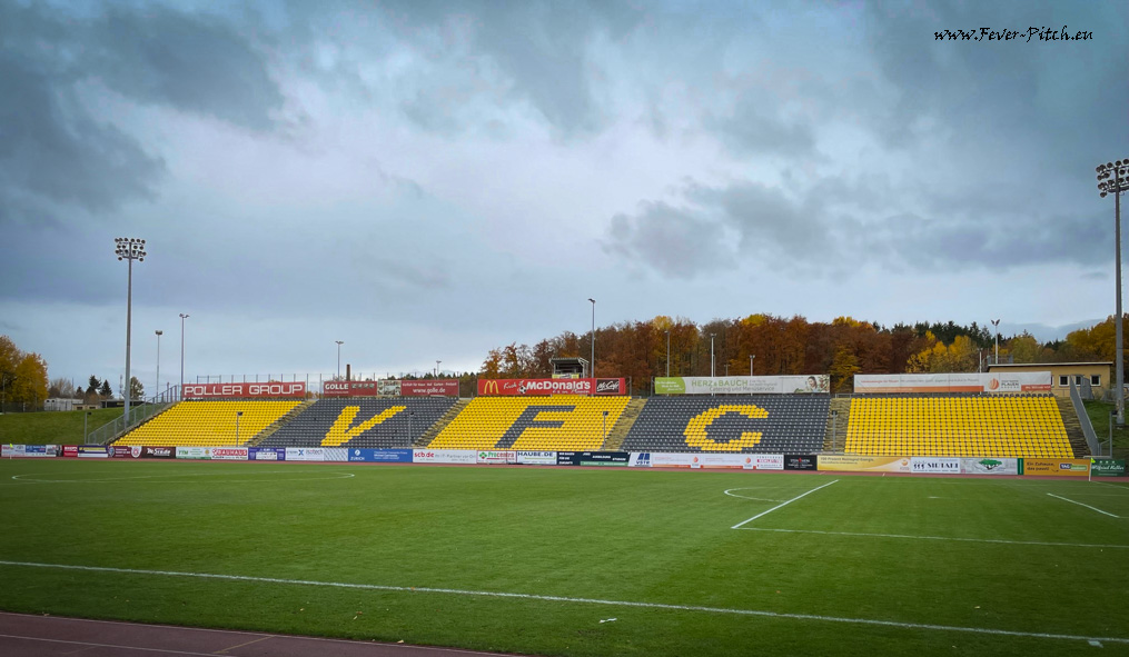markante Sitzplatz-Gegengerade mit dem VFC-Schriftzug. Insgesamt ein recht