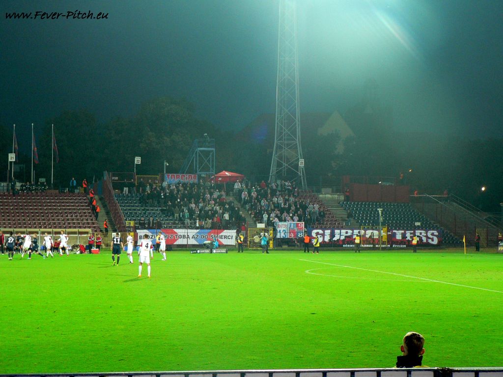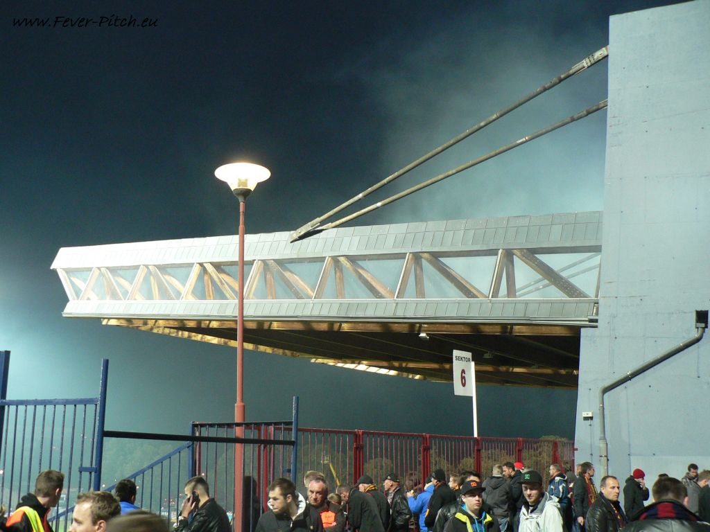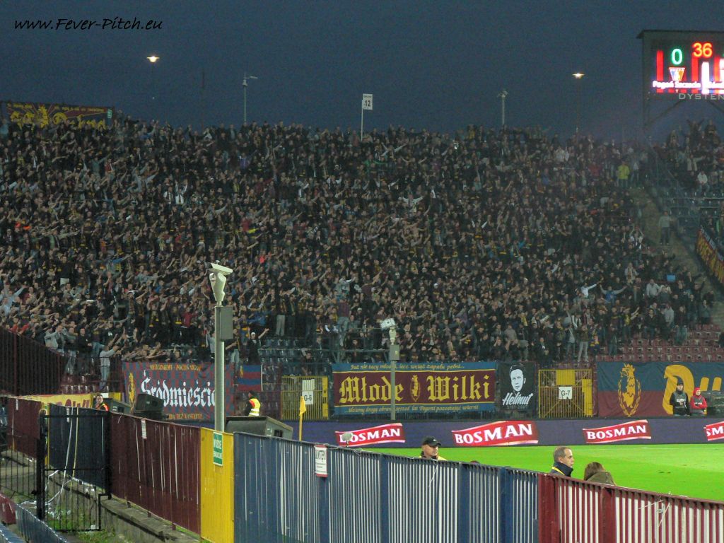 die Jahre gekommener Polenground in Hufeisenform, welcher rund 18.000 Zuschauern