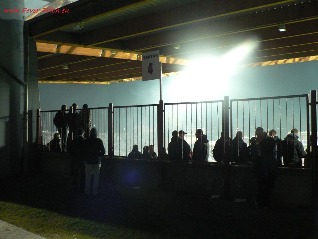 unters Tribünendach bzw. testete mit Vossi die angebotene Kielbasa, wie es sich
