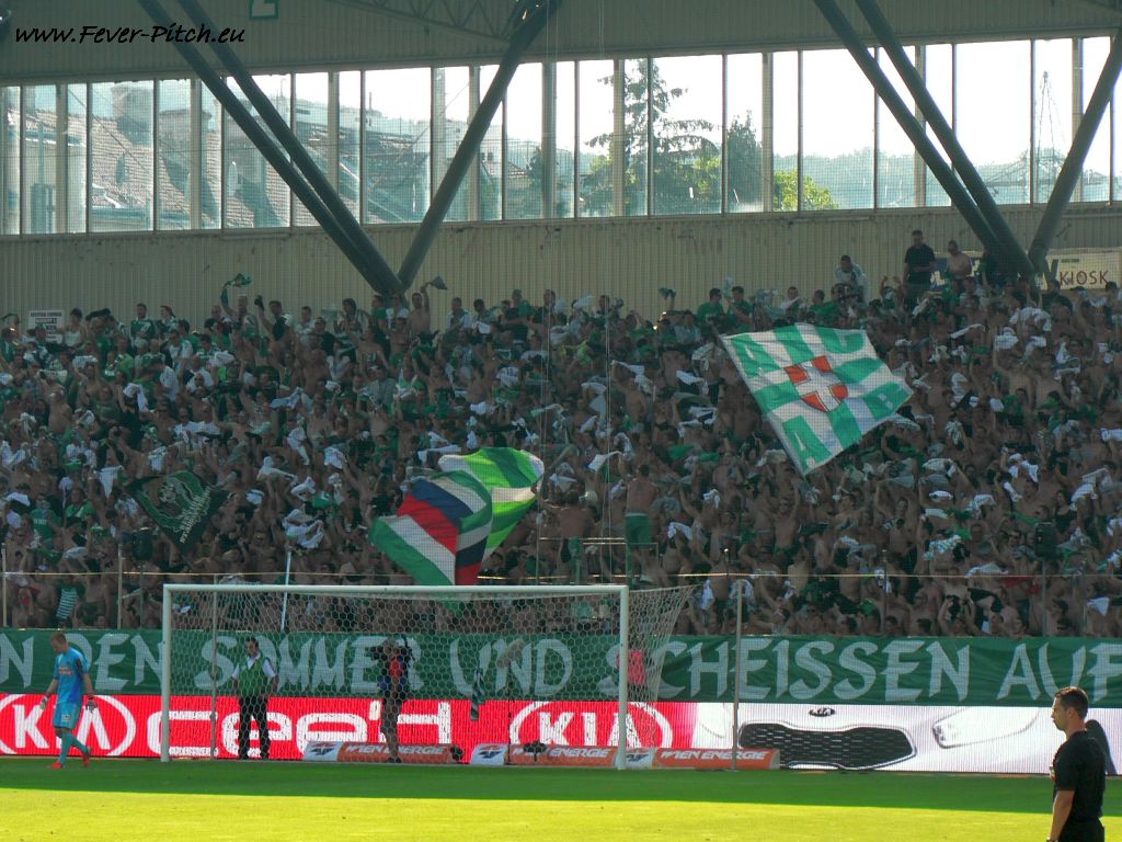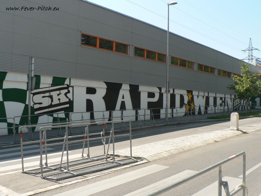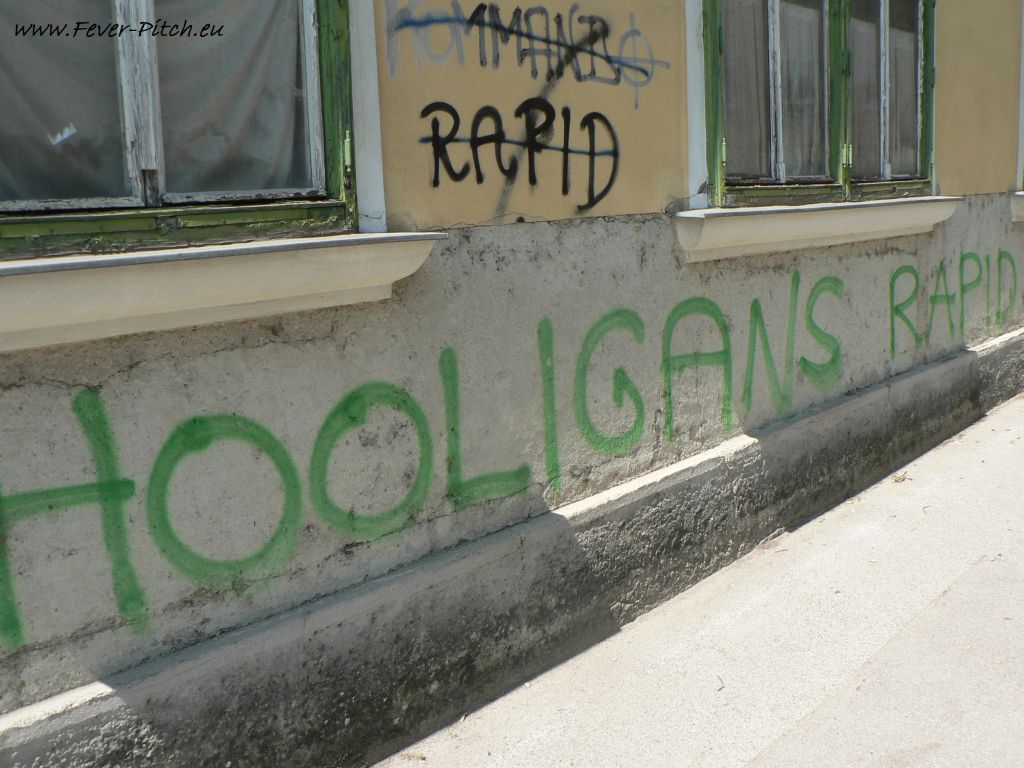 die zahlreichen Rapid Graffitis rund ums Stadion. Insbesondere auf die
