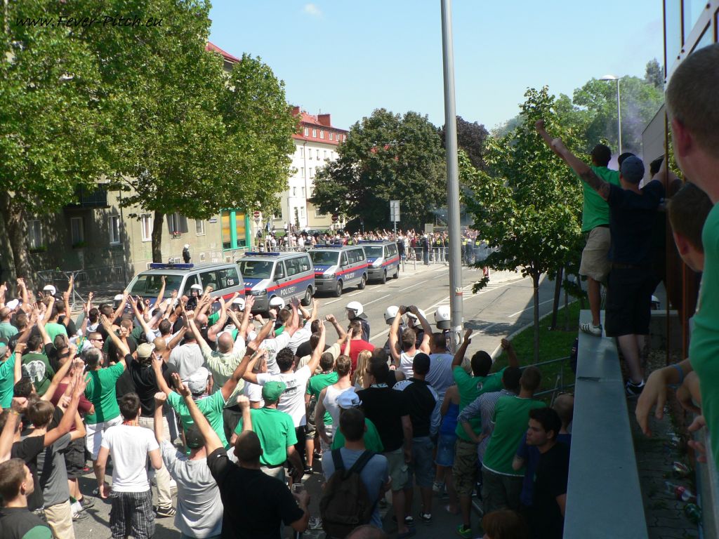 hat Hütteldorf erreicht und wird hinter der Ostseite zum Stadion geführt. Ein