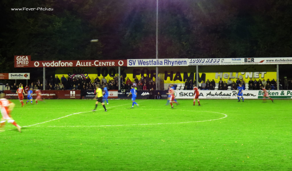 An diesem Mittwoch verlangte eine Stimme in mir danach, an einem sportplatzartigen Feld zu stehen und einem Fußballspiel beizuwohnen. Bock drauf, weit zu fahren, hatte ich hingegen wenig und so war der Oberligist SV Westfalia Rhynern im gleichnamigen Stadtteil Hamms so gerade noch im Nahverkehr-Radius akzeptabel. Die dritte Rundes des Westfalenpokals stand an und um genau zu sein, gab es sogar mindestens zwei gute Gründe hier mal vorstellig zu werden, denn erstens ist das Stadion im Papenloh in absehbarer Zeit Geschichte, da die Westfalia aktuell an einem Neubau werkelt und zweitens hat der Gast, also RW Ahlen, ne aktive Fanszene, die auch hin und wieder mal durch ein paar Riots in der Regionalliga auf sich aufmerksam macht. Heute waren so etwa 60 Anhänger aus der Wersestadt anwesend, von denen zwar keiner dem Sportplatz-Riot frönen wollte, etwa ein Dutzend das Team jedoch mit akustischem Support unterstützte. Paar Standardsachen und paar eigene Dinger wurden dem Liebhaber gediegener Stadiongesänge geboten und insgesamt war es ein schöner Fußballabend bei angenehm milden Herbsttemperaturen, schwummrig gelbem Flutlichtschein und gut süffigem Isenbeck-Pils aus der Flasche. Selbst der Stadion DJ scheint ein korrekter Typ zu sein, denn in der Halbzeit knallte dich tatsächlich „Lord of the boards“ von Guano Apes durch die blechern klingenden Boxen. Keine Ahnung, entweder wurde die CD oder Kassette (alle ab 2000 Geborenen; bitte googelt, was das ist) hier seit 1997 nicht getauscht oder der Mensch am Mischpult ist einfach nur wie ich ein Kind der 90er, groß geworden in den 90ern und sozialisiert durch Crossover-Metal. 90 Jahre, beste Jahre!