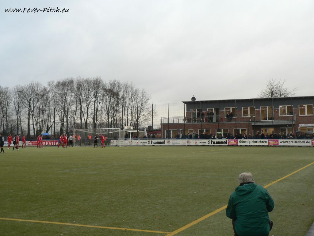 Eine aktive Fanszene sucht man hier aber natürlich vergebens. Nun ja, einen Hauch von Fankultur brachten da die grob geschätzten 80 mitgereisten Wattenscheider, von denen aber nur ca. 10 hier und da mal ein Liedchen trällerten. Für kurzes Augenreiben meinerseits sorgte dann doch eher der Torwart der Roländer (sagt man das so?), dem ich eher die Sportart Kugelstoßen oder Ringen zugesprochen hätten. Wider erwarten machte dieser seine Sache aber ganz gut, hatte zumindest an den vier Gegentreffern keine Schuld. Wattenscheid somit neben Lippstadt heißester Kandidat für die Meisterschaft. Zumindest der Sprung in die Regionalliga wäre dem ehemaligen Erstligisten (1990-1994) sehr zu wünschen.