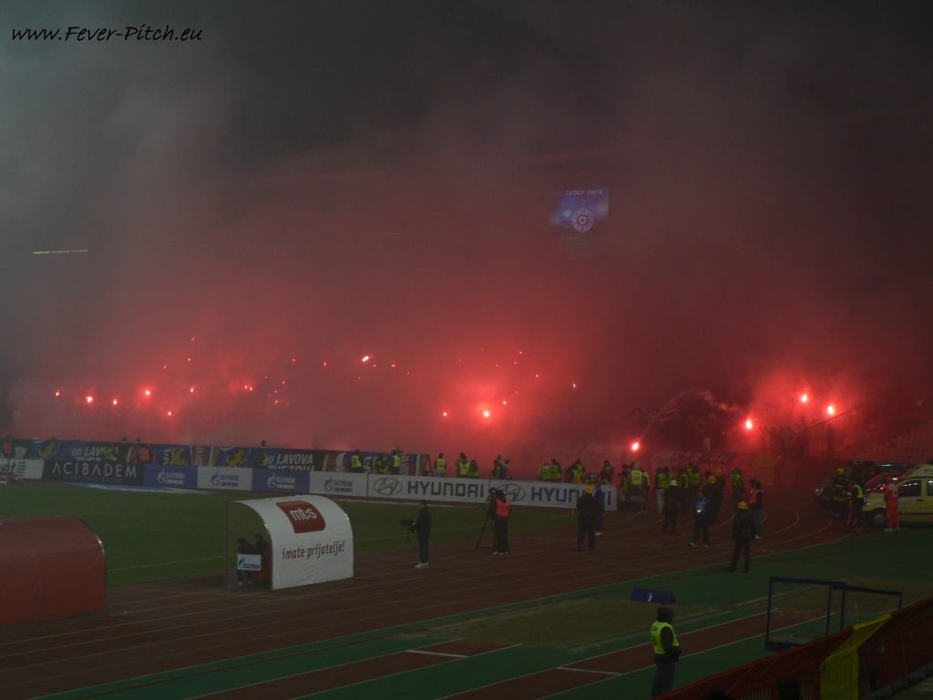 und Grobari die Fackeln um die Ohren werfen, sondern der Partizananhang sich