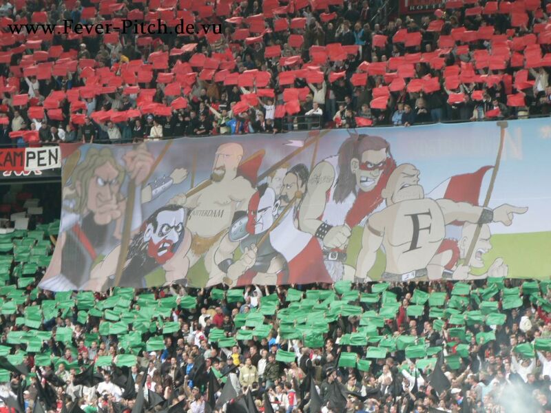 Ebenso der Feyenoordanhang, welcher auch nur gelegentlich überzeugen konnte, wobei Sachen wie "We love you Feyenoord, we do", Hasslieder gegen den Rivalen oder das Vereinslied sehr laut rüberkamen. Supporttechnisch alles sehr britisch angehaucht.