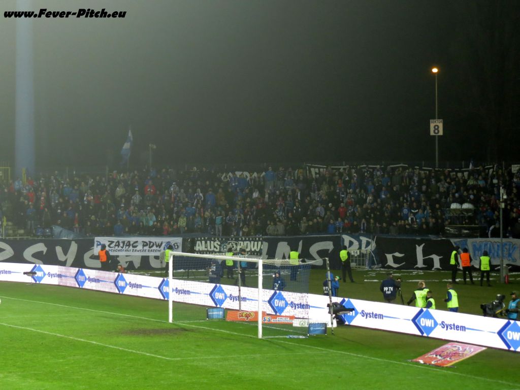 Teile der zwoten Hälfte zieht. Psychofans-Blockfahne, dahinter mit Bengalos