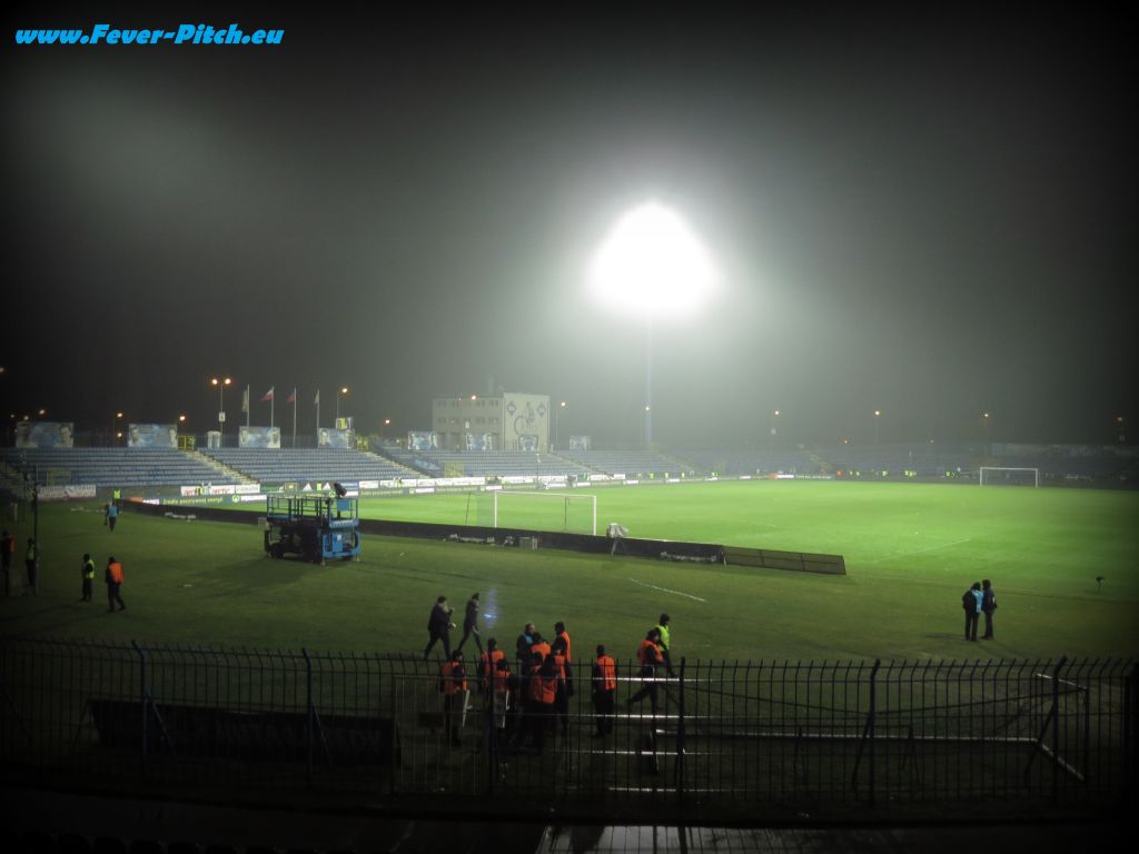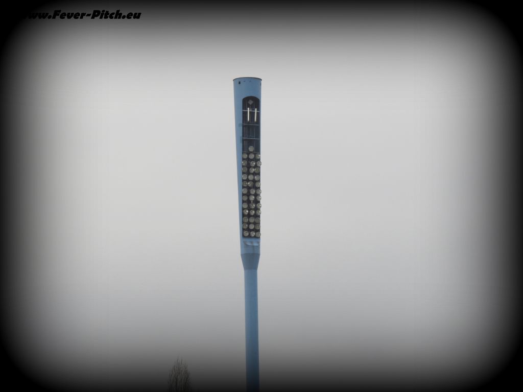 mit der geilen alten Tribüne und dem milchigen Flutlichtschein in ein