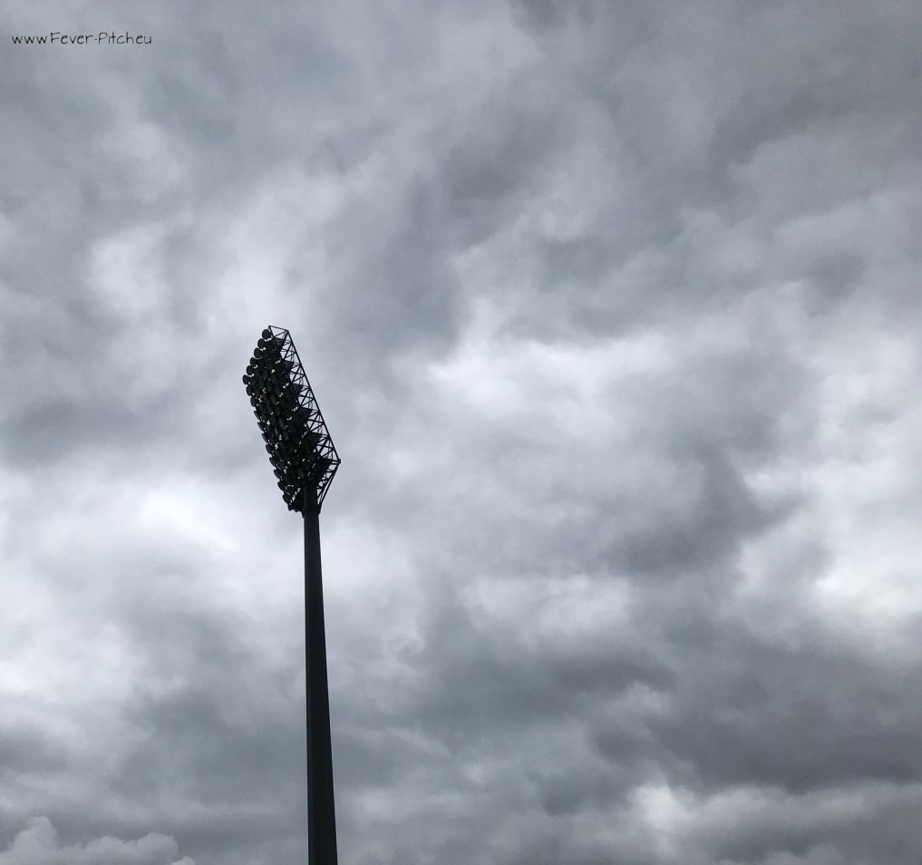 Flutlichtmast wurde quasi als Denkmal von der Abrissbirne verschont.