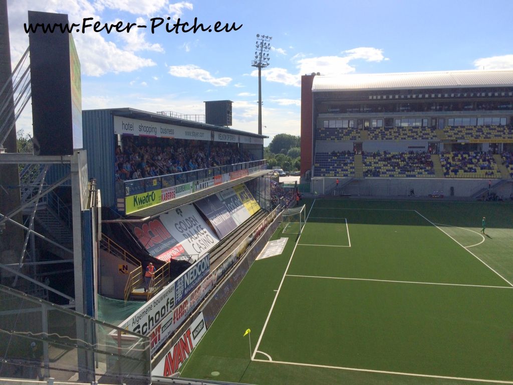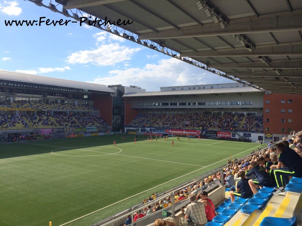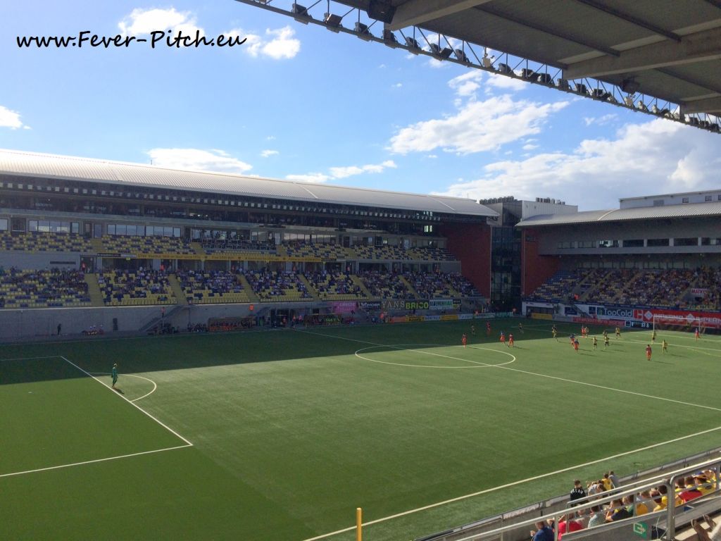 eine Minute vor Anpfiff unsere Plätze im durchaus schönen Stadion „Stayen“ ein,
