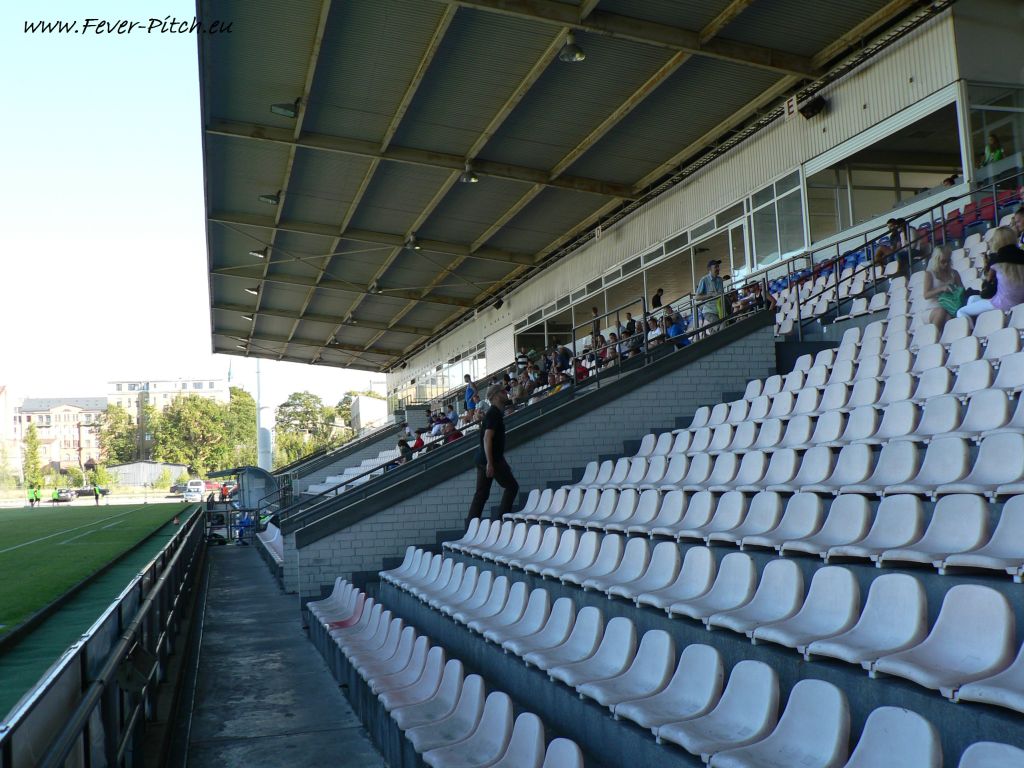 bestehend aus überdachten Sitzplätzen bieten etwa 8.000 Zuschauern Platz.