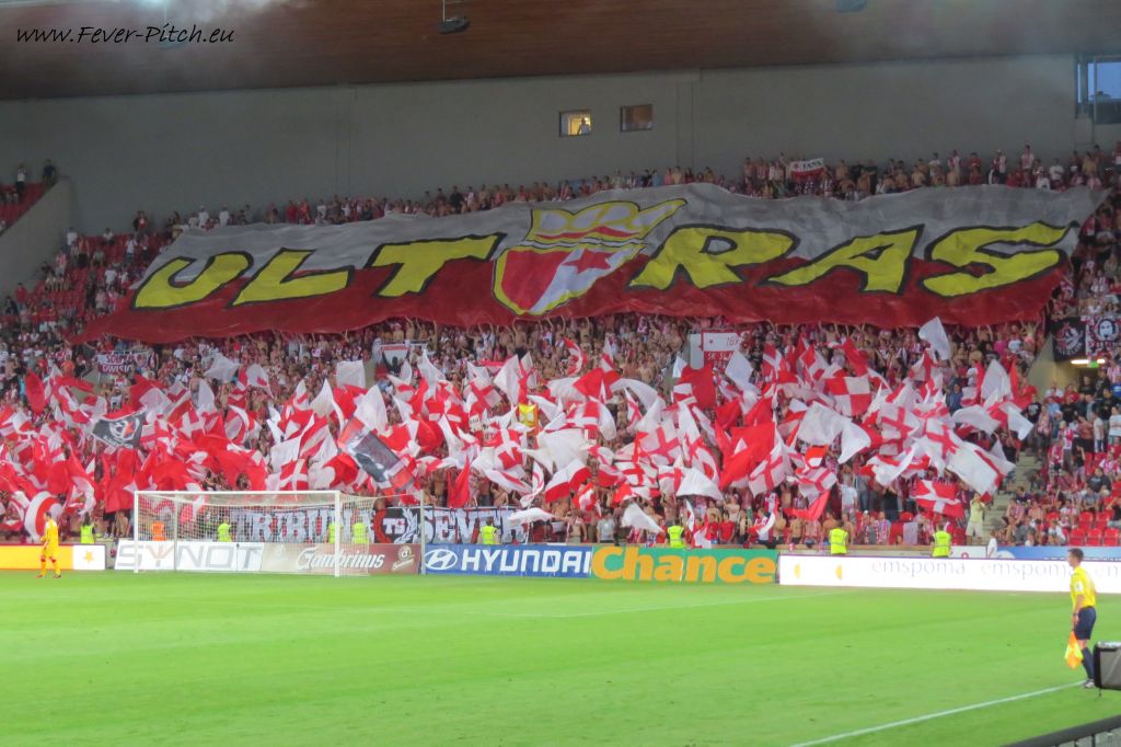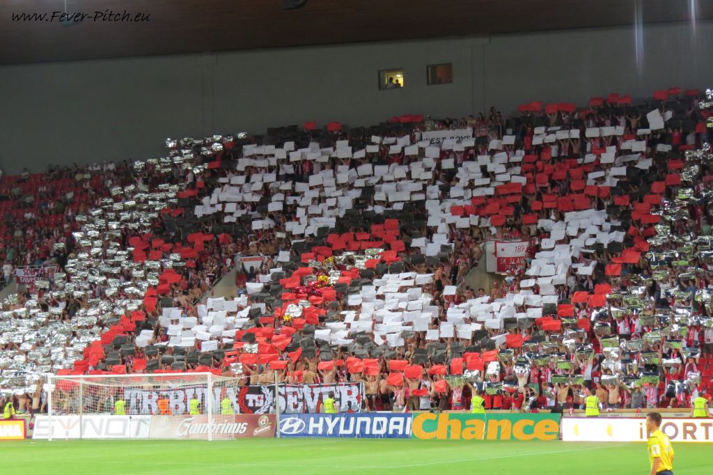 Immerhin sind die Slavia Ultras so nett und warten mit ihrer Choreo, in der sie