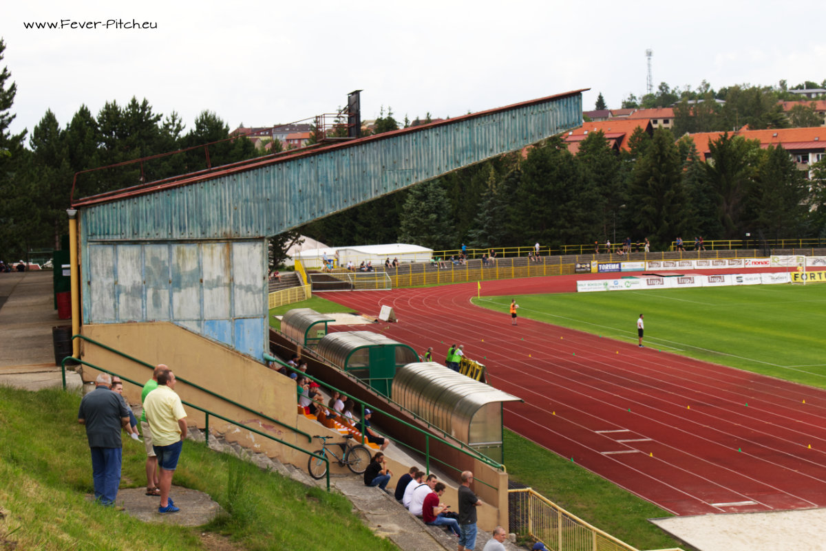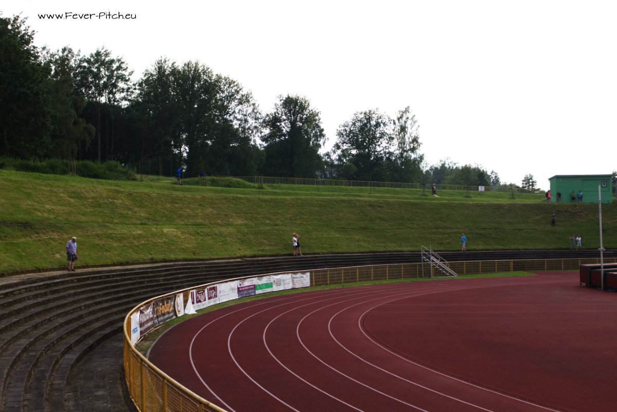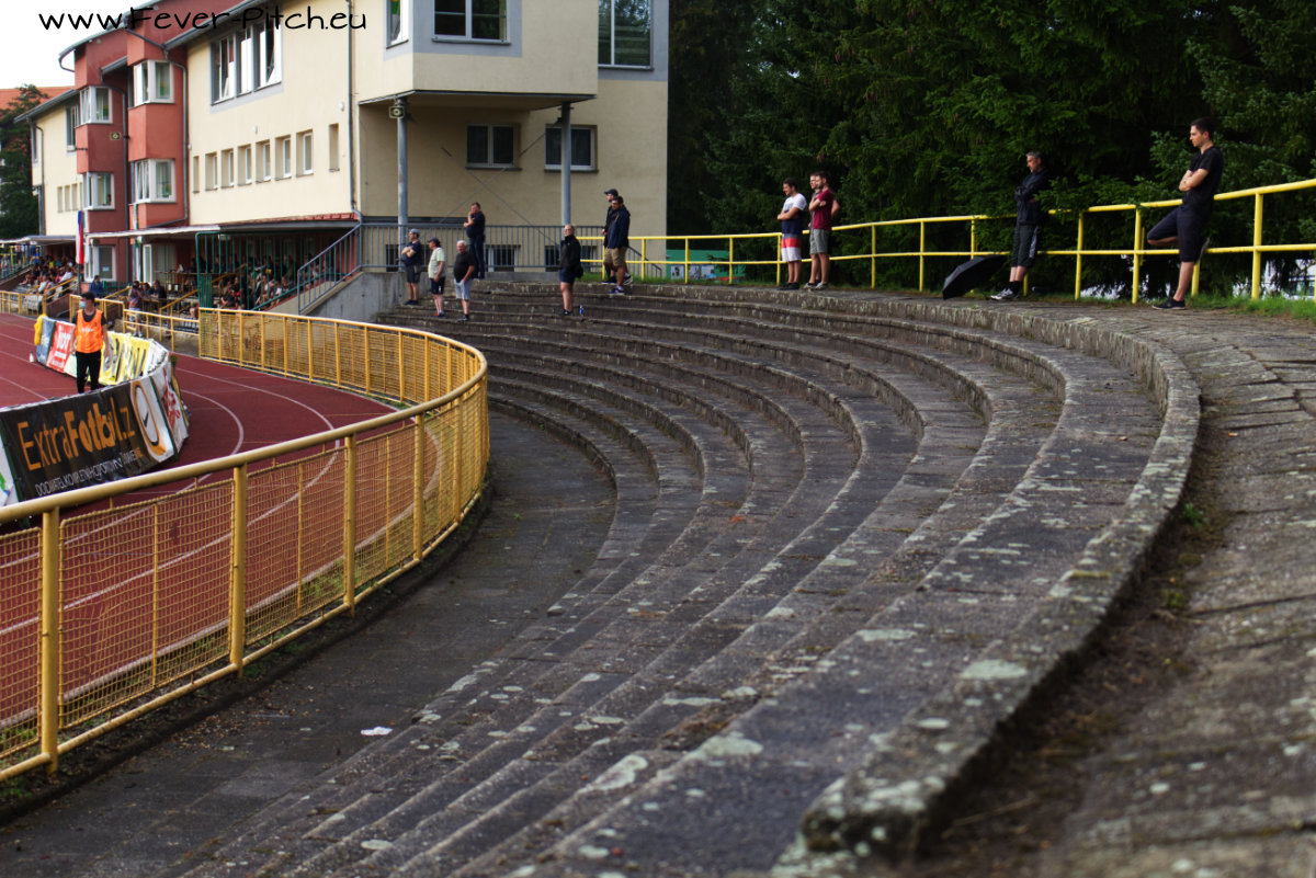 Eyecatcher sind sicherlich die deutlich in die Jahre gekommene Sitzplatztribüne