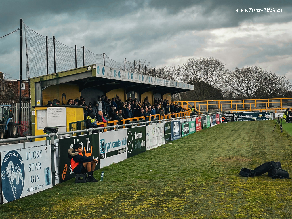 Heute gibt es hier Ligaalltag, die Zuschauerzahl ist mit gut 2.200 recht respektabel. Diesem sympathischen Club aus Londons Süden drücke ich jedenfalls die Daumen, dass man im Sommer die Klasse halten kann.