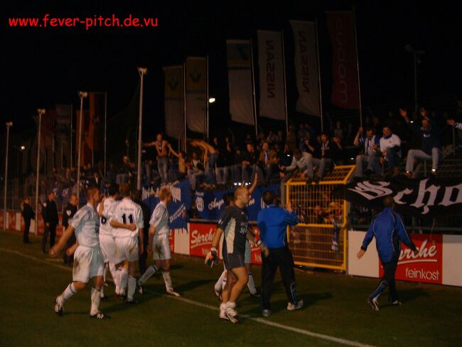 schätzungsweise 150 blau-weisse Auswärtsfahrer; unterstützt von