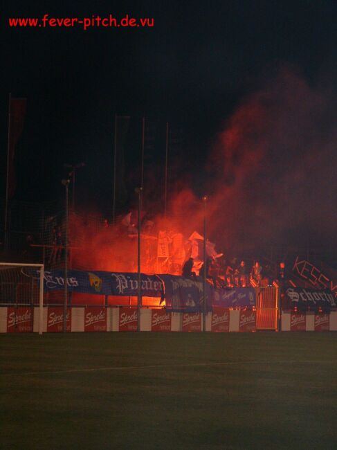 was von Meppen Seite mit Doppelhalterstangen und einigen Bierbecherhageln erwidert
