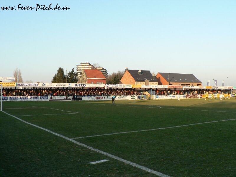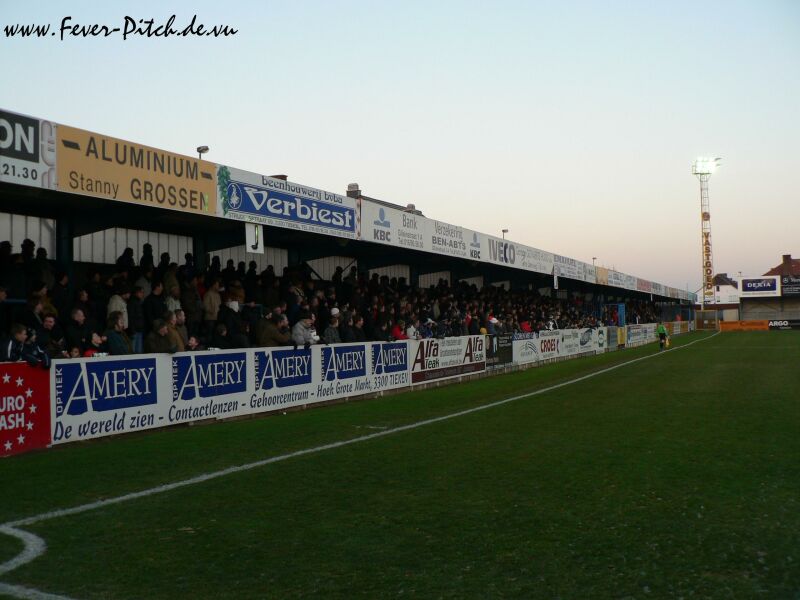Stehplatztribüne sowie hinter den Toren einmal weitere überdachte