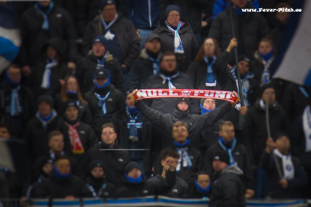 Spielbeginn und einem Soli-Spruchband für die Freunde aus dem niederländischen