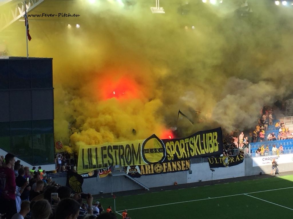 begann der Lillestrøm Anhang mit einer überaus fetten Ladung schwarzem und vor