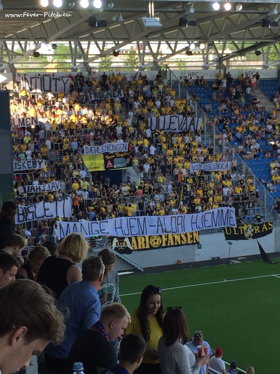 Bersten gefüllt mit vornehmlich roten Trikots (die Skandinavier sind allgemein
