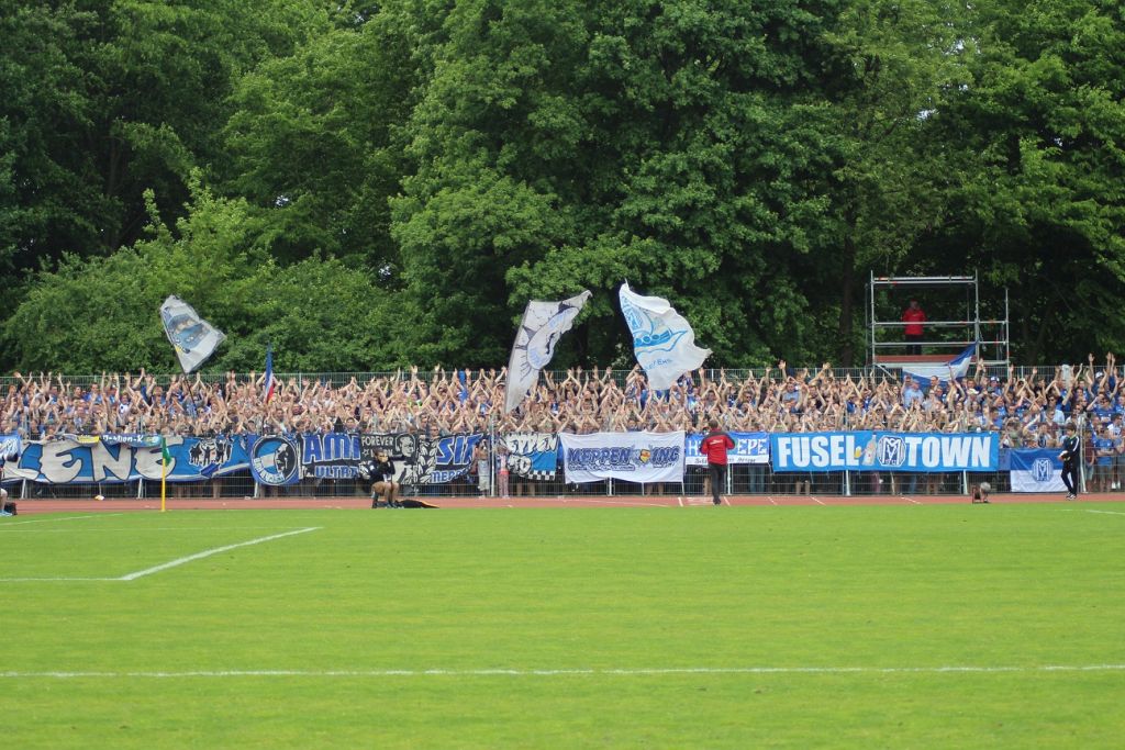 Spieler Wagner, Leugers, Kremer und Kleinsorge direkt unter den aktiven Stimmungskern
