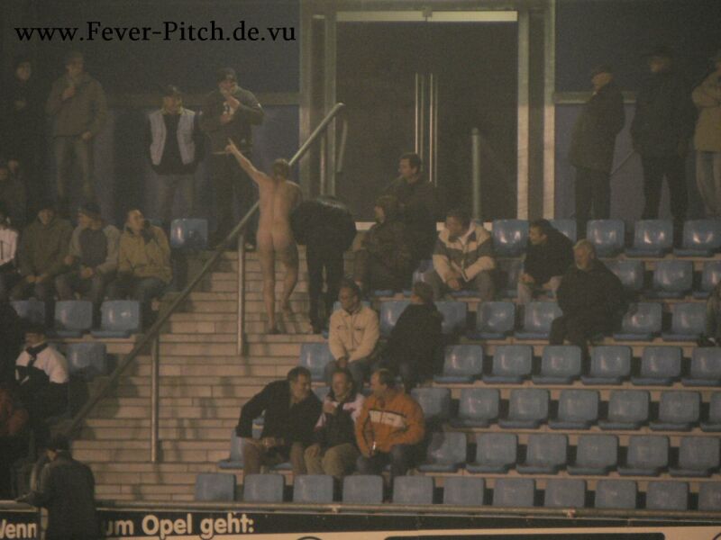 Doch da dieser Mann splitterfasernackt und obendrein im Begriff ist, aufs Spielfeld