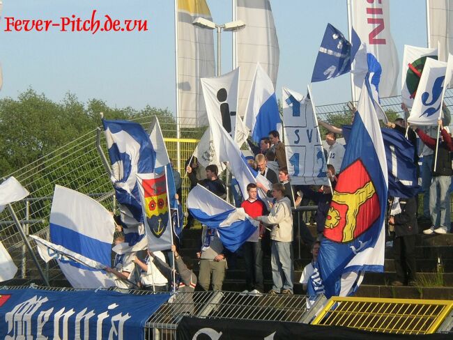 gegenüberliegenden Hintertortribüne lediglich ein Dutzend Heimfans,