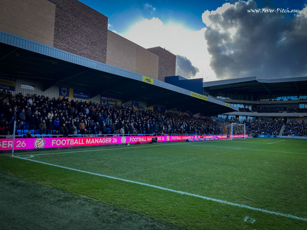 ordentlich gefüllt. Hinter dem einen Tor stehen die Getreuen des AFC die