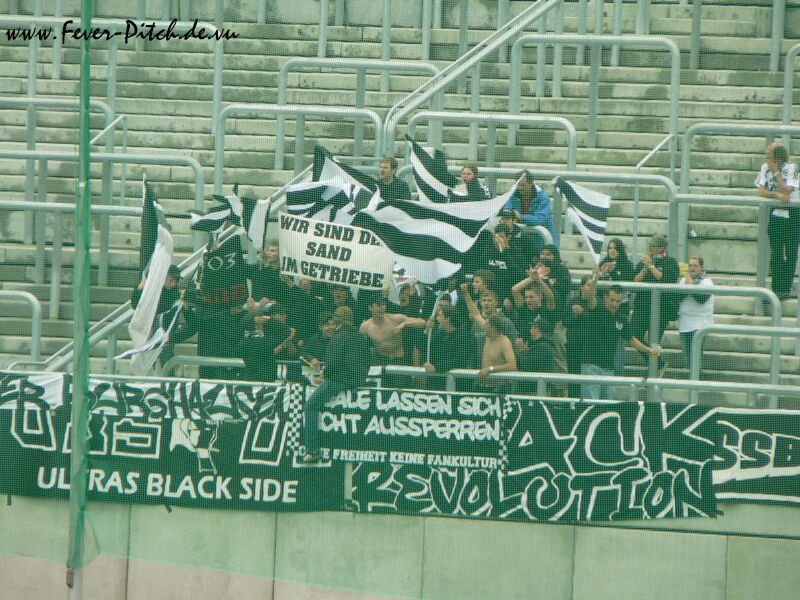 der mit einer Busladung fast ausnahmslos jungen Ultras angereist war und neben