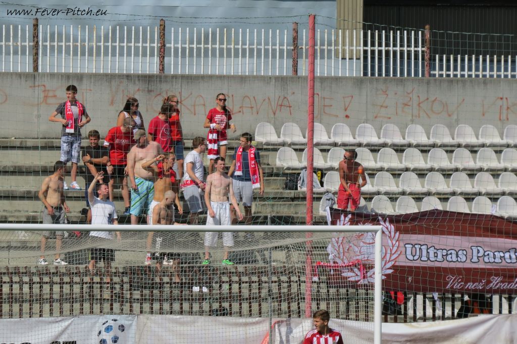 tummeln sich sogar ca. 20 zumeist Jugendliche hinter einer „Ultras Pardubice“-